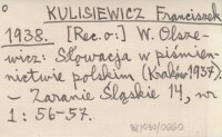 KULISIEWICZ Franciszek 1938 [Rec. o:] W. Olszewicz: Słowacja w piśmiennictwie polskim (Kraków 1937).