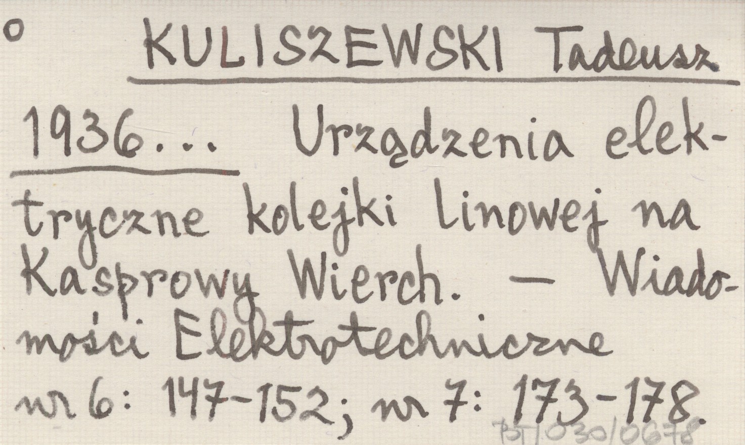 KULISZEWSKI Tadeusz 1936... Urządzenia elektryczne kolejki linowej na Kasprowy Wierch.