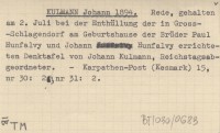 KULMANN Johann 1894 Rede, gehalten am 2. Juli bei der Enthüllung der in Gross-Schlagendorf am Geburtshause der Brüder Paul Hunfalvy und Johann Kulmann, Reichstagsabgeordnerter.