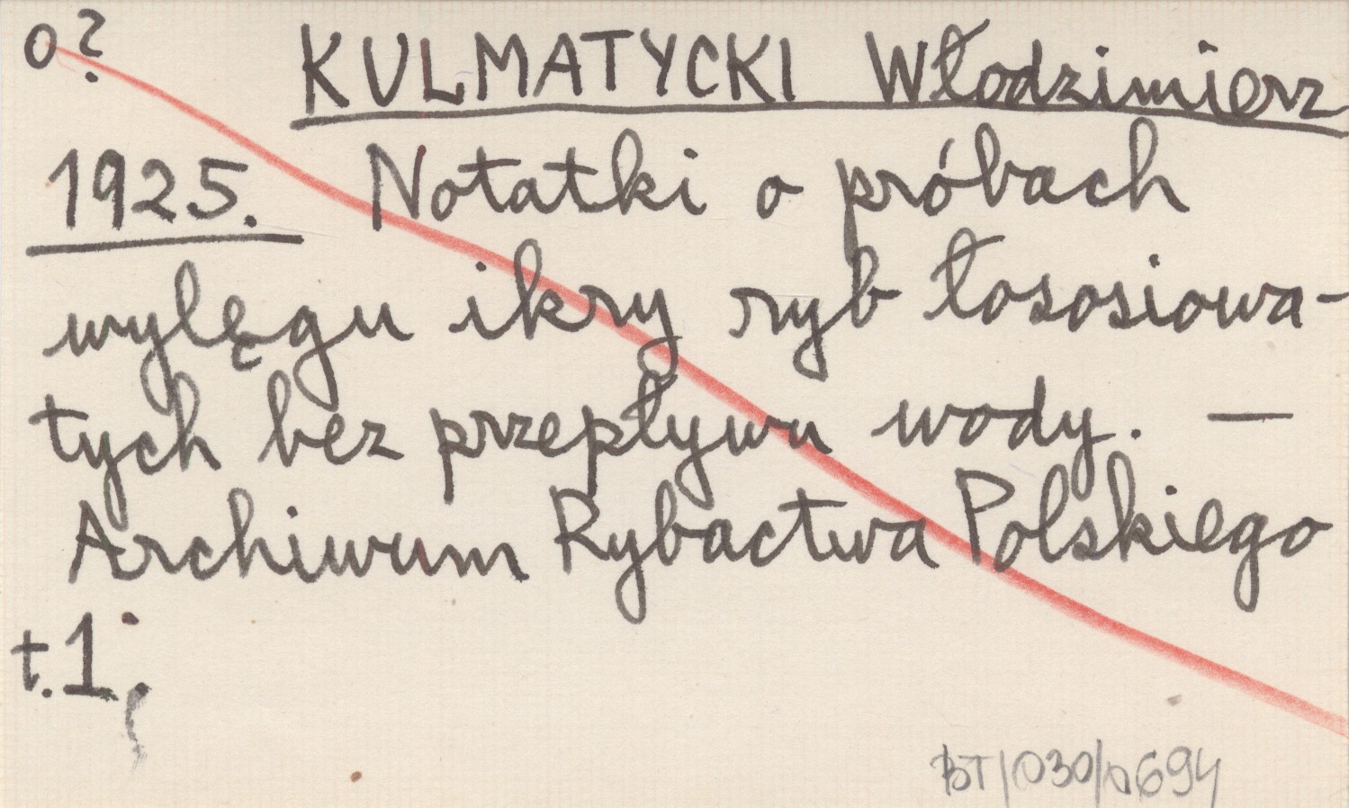 KULMATYCKI Włodzimierz 1925 Notatki o próbach wylęgu ikry ryb łososiowatych bez przepływu wody.