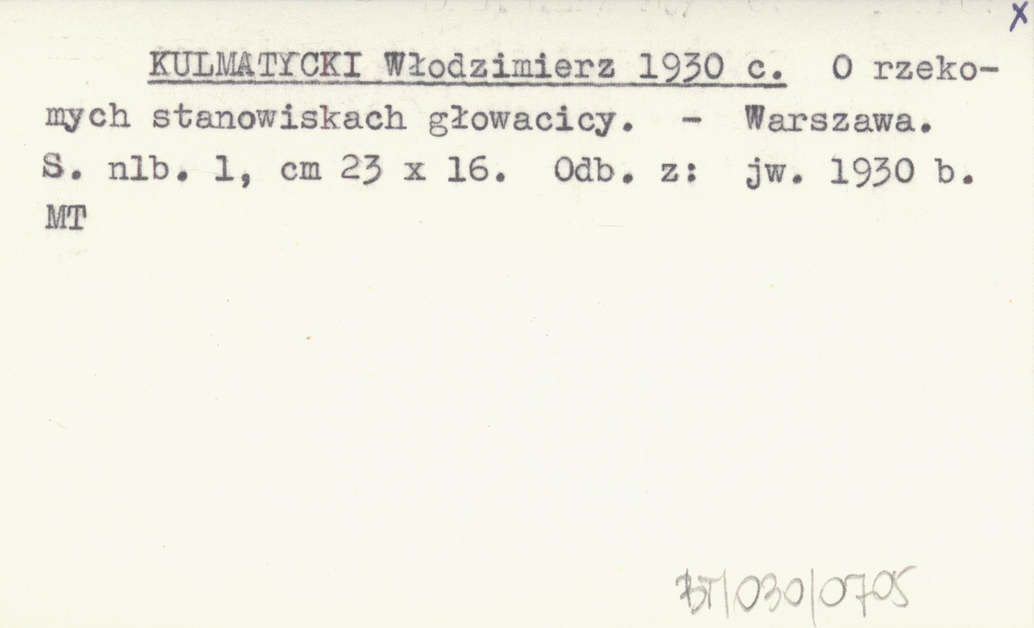 KULMATYCKI Włodzimierz 1930 c O rzekomych stanowiskach głowacicy.