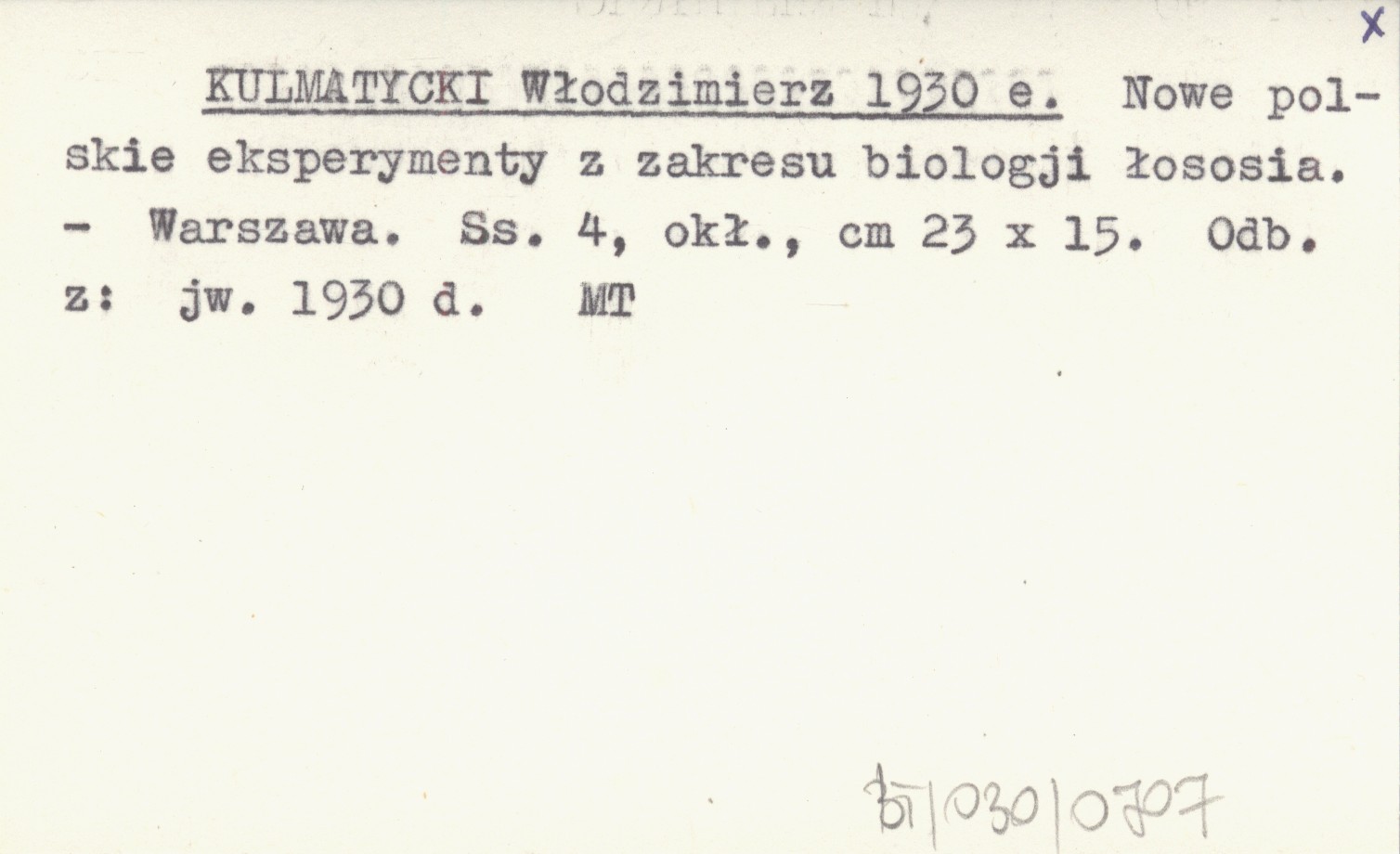 KULMATYCKI Włodzimierz 1930 e Nowe polskie eksperymenty z zakresu biologji łososia.
