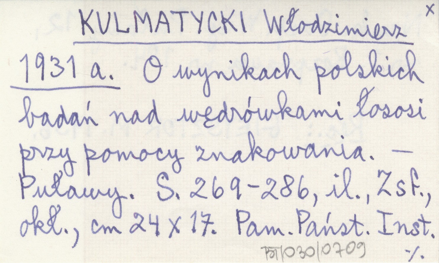 KULMATYCKI Włodzimierz 1931 a O wynikach polskich badań nad wędrówkami łososi przy pomocy znakowania.