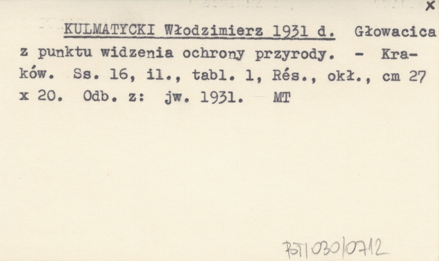 KULMATYCKI Włodzimierz 1931 d Głowacica z punktu widzenia ochrony przyrody.