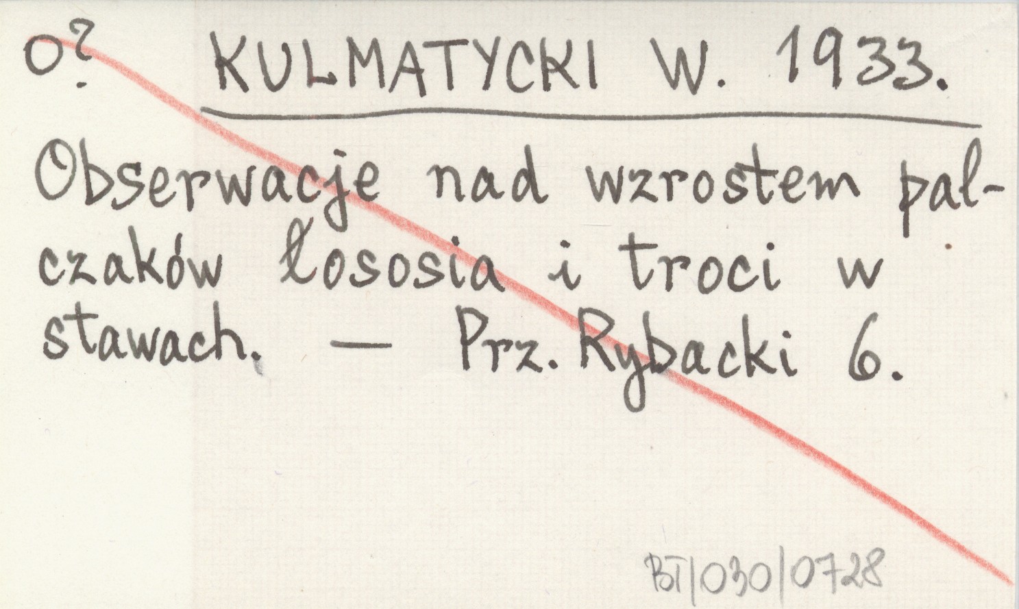 KULMATYCKI W. 1933 Obserwacje nad wzrostem palczaków łososia i troci w stawach.