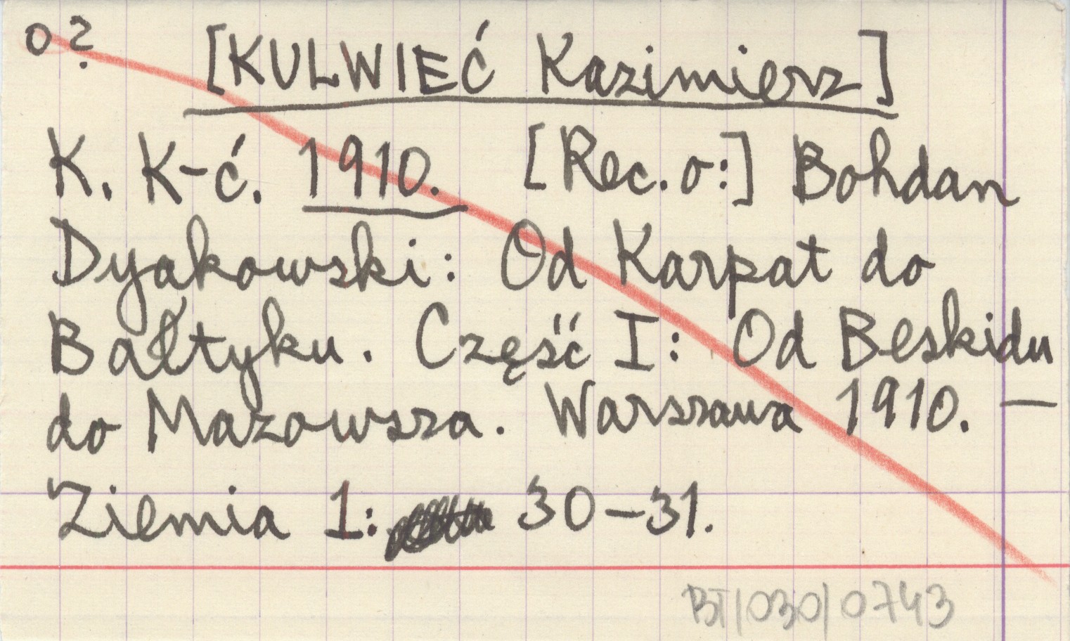 K. K-ć. [KULWIEĆ Kazimierz] 1910 [Rec. o:] Bohdan Dyakowski: Od Karpat do Bałtyku. Część I: Od Beskidu do Mazowsza. Warszawa 1910.