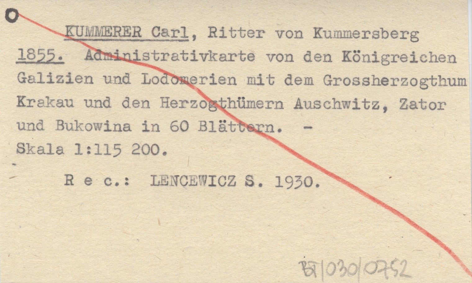 Ritter von Kummersberg KUMMERER Carl 1855 Administrativkarte von den Königreichen Galizien und Lodomerien mit dem Grossherzogthum Krakau und den Herzogthümern Auschwitz, Zator und Bukowina in 60 Blättern.