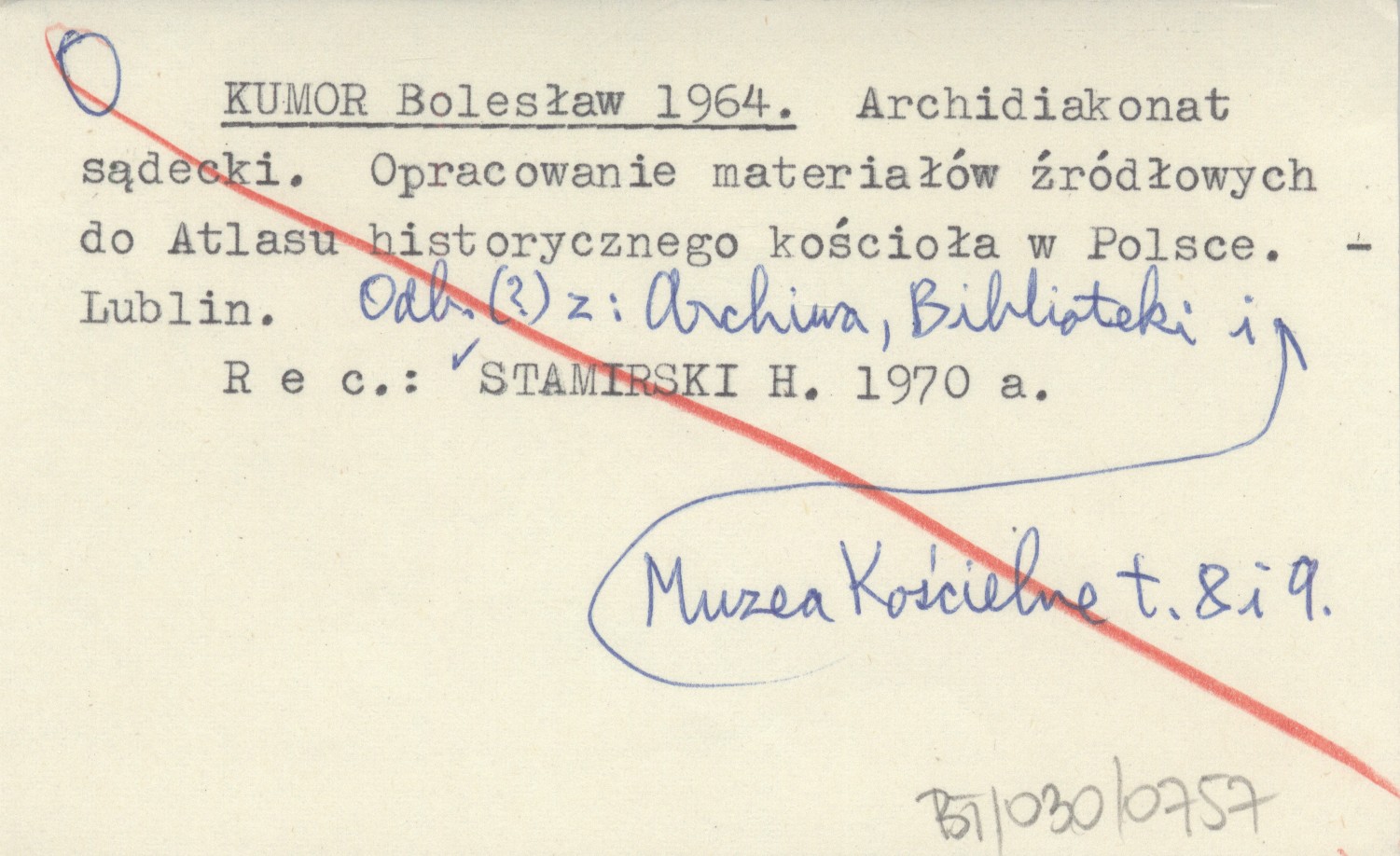KUMOR Bolesław 1964 Archidiakonat sądecki. Opracowanie materiałów źródłowych do Atlasu historycznego kościoła w Polsce.