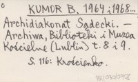 KUMOR Bolesław 1964 Archidiakonat sądecki. Opracowanie materiałów źródłowych do Atlasu historycznego kościoła w Polsce.