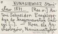 KUNASIEWICZ Stanisław 1871... [Rec. o:] Antoni Schneider: Encyklopedya do krajoznawstwa Galicyi [...].