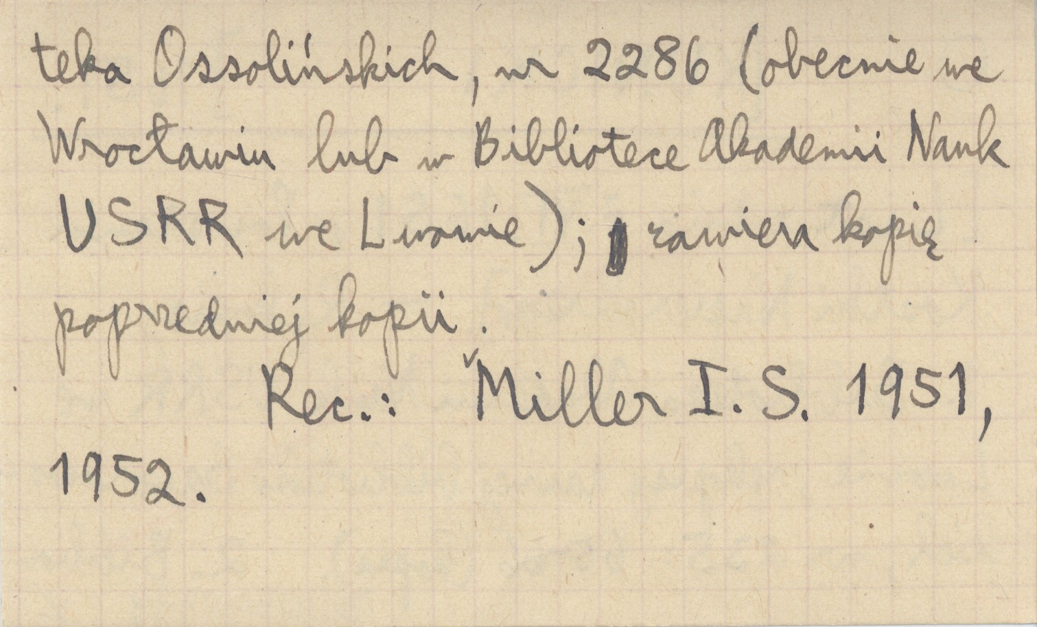 , Rękopisy: 1. Biblioteka Akademii Nauk USRR we Lwowie, rękopisy dawnej biblioteki Baworowskich, nr 235: 65-66 (kopia). 2. Biblioteka Ossolińskich, nr 2286 (obecnie we Wrocławiu lub w Bibliotece Akademii Nauk USRR we Lwowie), zawiera kopię poprzedniej kopii. REC: MILLER I. S. 1951, 1952