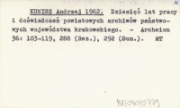 KUNISZ Andrzej 1962 Dziesięć lat pracy i doświadczeń powiatowych archiwów państwowych województwa krakowskiego.