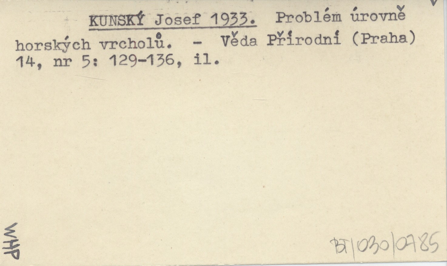 KUNSKÝ Josef 1933 Problém úrovně horských vrcholů.