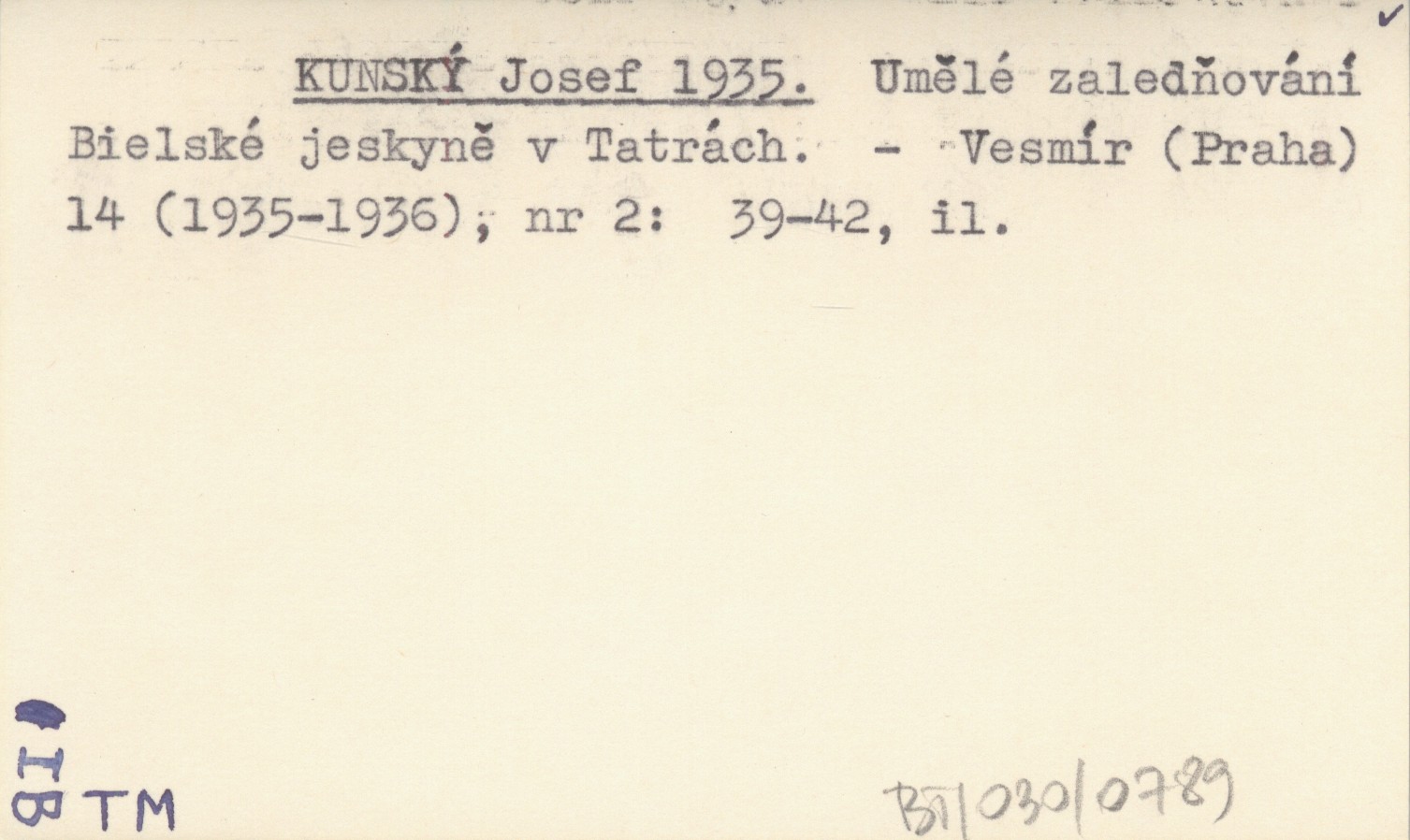 KUNSKÝ Josef 1935 Umělé zaledňování Bielské jaskyně v Tatrách.
