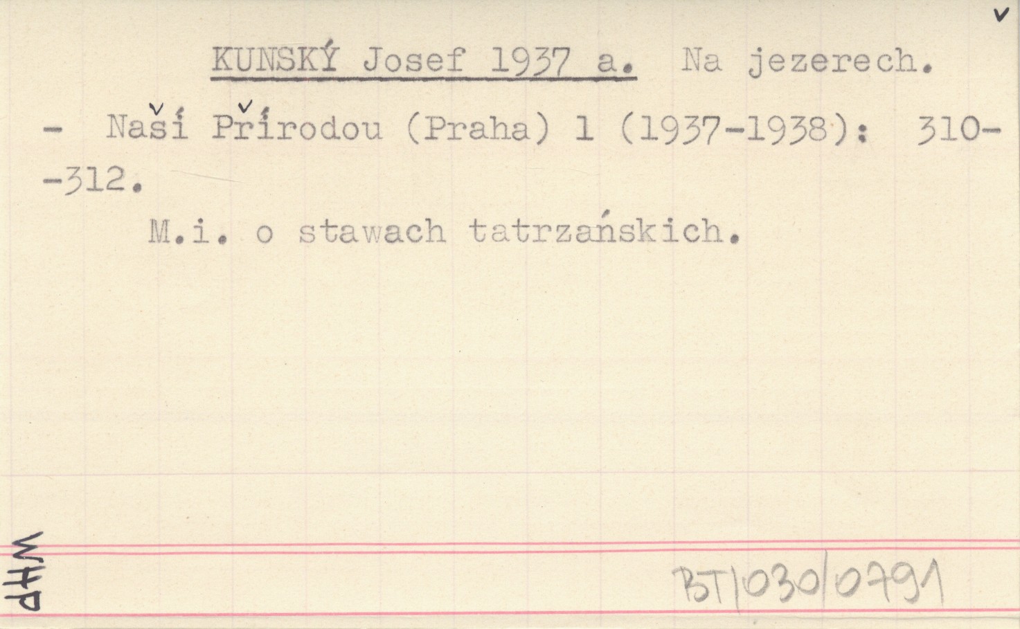 Naší Přírodou (Praha) , 1 (1937-1938): 310-312. M. in. o stawach tatrzańskich.