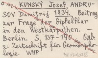 KUNSKÝ Josef ANDRUSOV, Dimitrij. ; 1934 Beitrag zur Frage der Gipfelfur in den Westkarpathen.