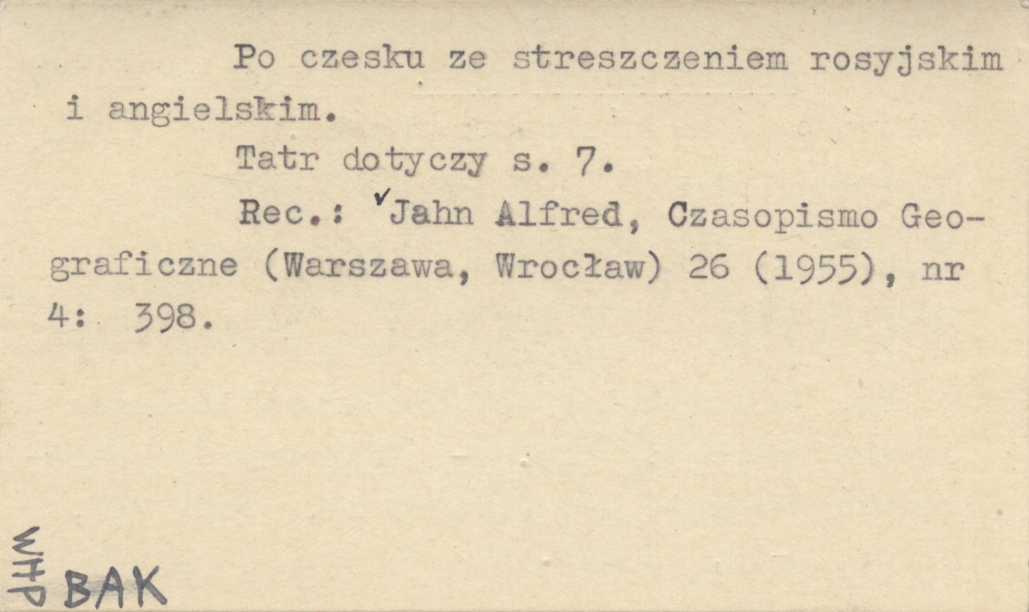 Rozpravy Československé Akademie Věd (Praha) , 64, řada MPV, nr 1: 1-10, 2 k. Tatr dotyczy s. 7. Po czesku ze streszczeniem rosyjskim i angielskim. REC: JAHN Alfred, Czasopismo Geograficzne (Warszawa, Wrocław) 26 (1955), nr 4: 398.
