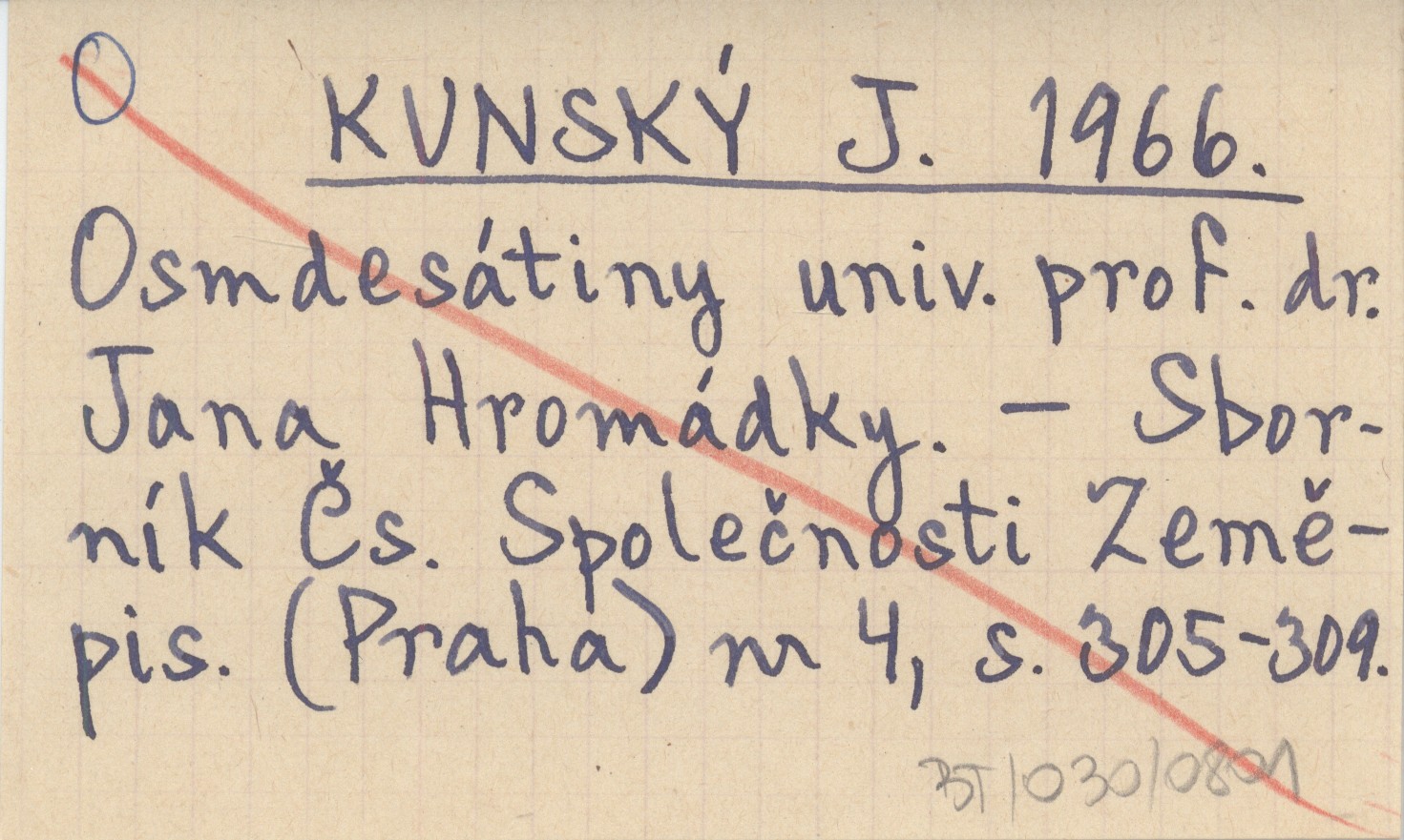 KUNSKÝ J. 1966 Osmdesátiny univ. prof. dr. Jana Hromádky.