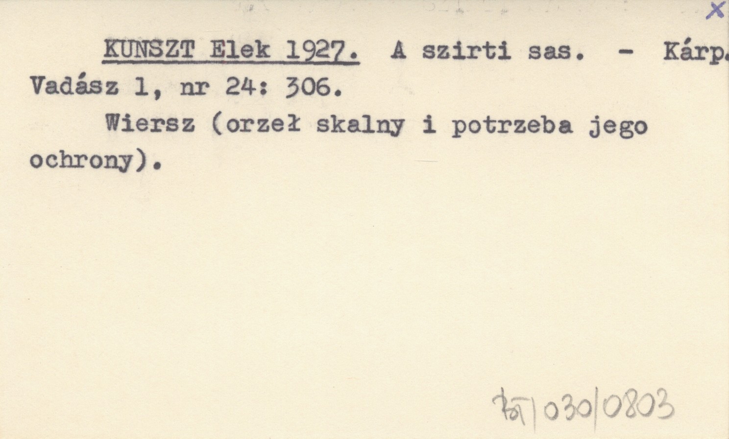 Kárpáti Vadász, 1, nr 24: 306. Wiersz (orzeł skalny i potrzeba jego ochrony).