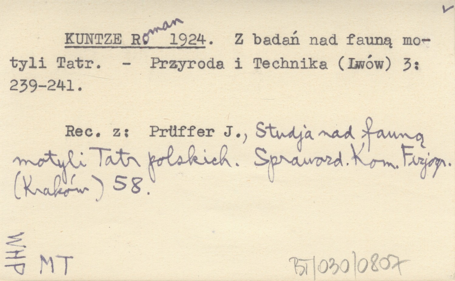 Przyroda i Technika (Lwów) , 3: 239-241. REC: PRÜFFER J., Studja nad fauną motyli Tatr polskich. Sprawozdanie Komisji Fizjograficznej (Kraków) 58.