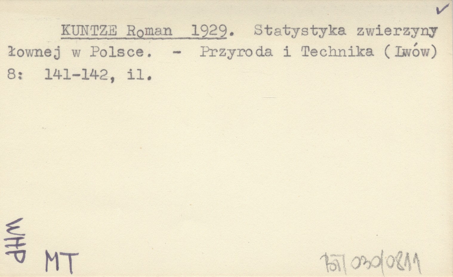KUNTZE Roman 1929 Statystyka zwierzyny łownej w Polsce.