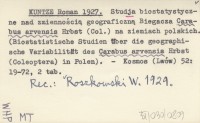 KUNTZE Roman 1927 Studja biostatystyczne nad zmiennością geograficzną Biegacza Carabus arvensis Hrbst (Col.) na ziemiach polskich. (Biostatistische Studien über die geographische Variabilität des Carabus arvensis Hrbst (Coleoptera) in Polen).