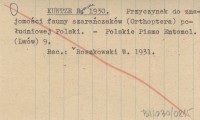 KUNTZE Roman 1930 Przyczynek do znajomości fauny szarańczaków (Orthoptera) południowej Polski.