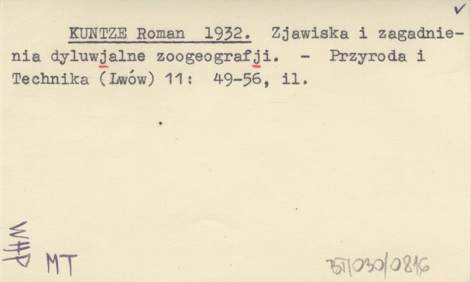 KUNTZE Roman 1932 Zjawiska i zagadnienia dyluwjalne zoogeografji.