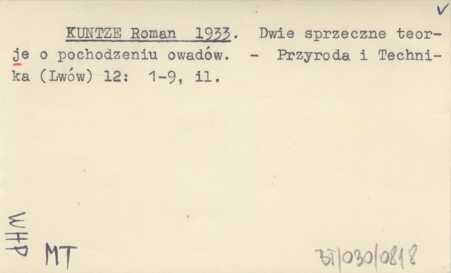 KUNTZE Roman 1933 Dwie sprzeczne teorje o pochodzeniu owadów.