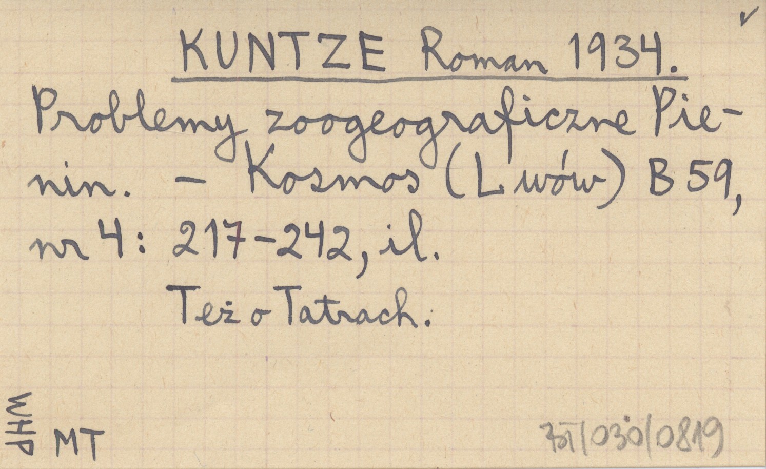 KUNTZE Roman 1934 Problemy zoogeograficzne Pienin.