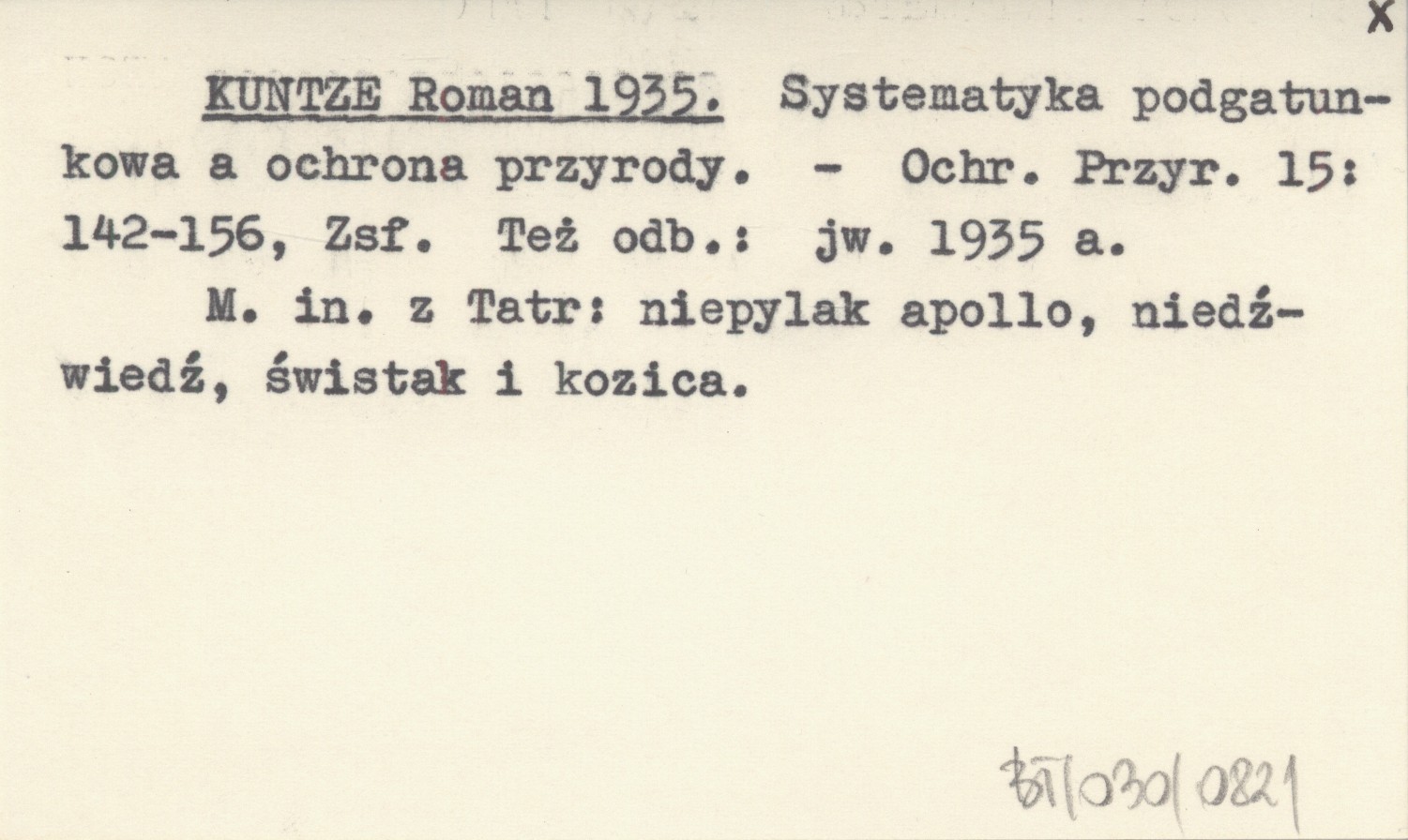 KUNTZE Roman 1935 Systematyka podgatunkowa a ochrona przyrody.