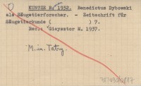 KUNTZE Roman 1932 Benedictus Dybowski als Säugetierforscher.