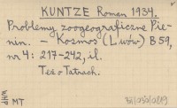 KUNTZE Roman 1934 Problemy zoogeograficzne Pienin.