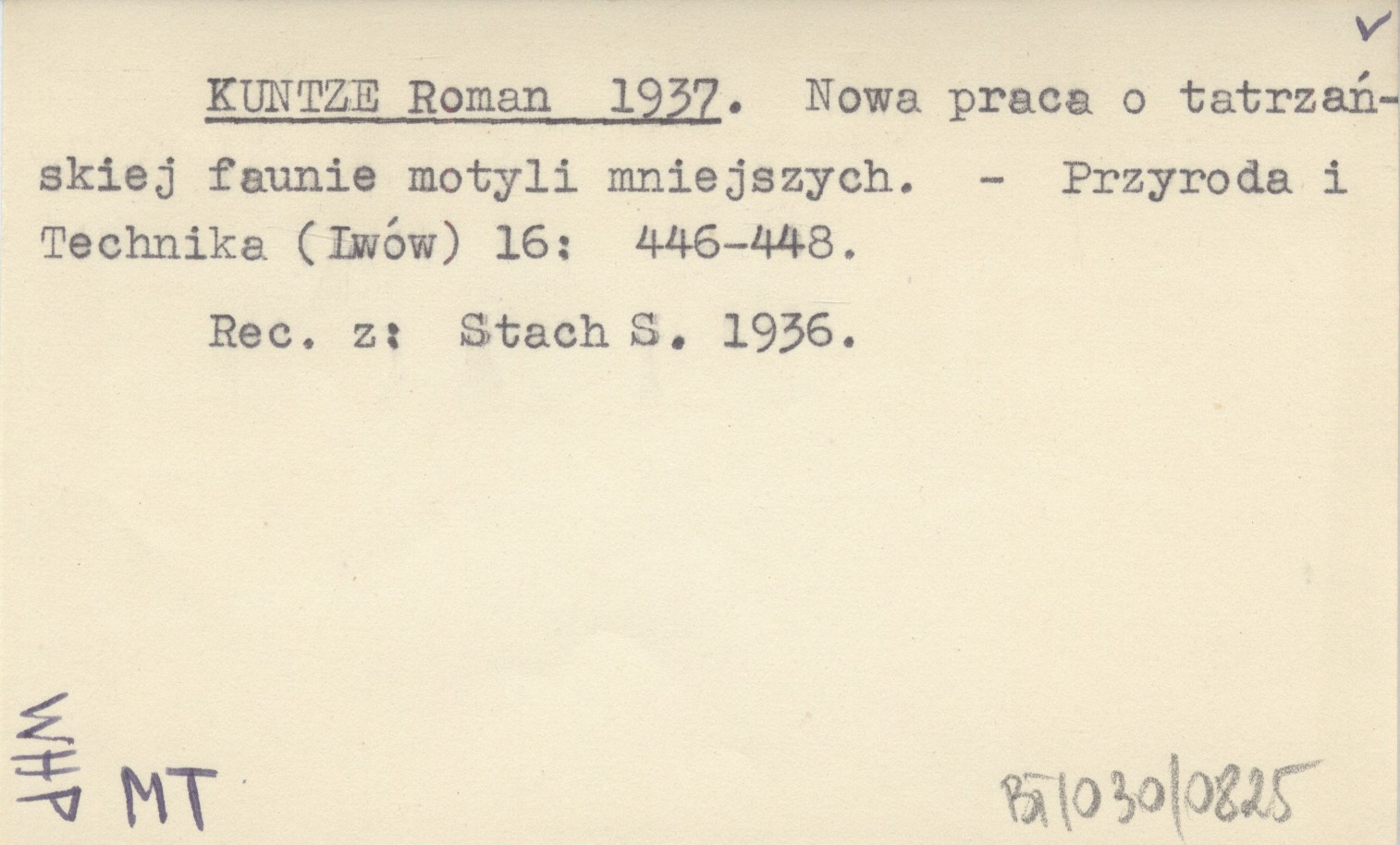 KUNTZE Roman 1937 Nowa praca o tatrzańskiej faunie motyli mniejszych.