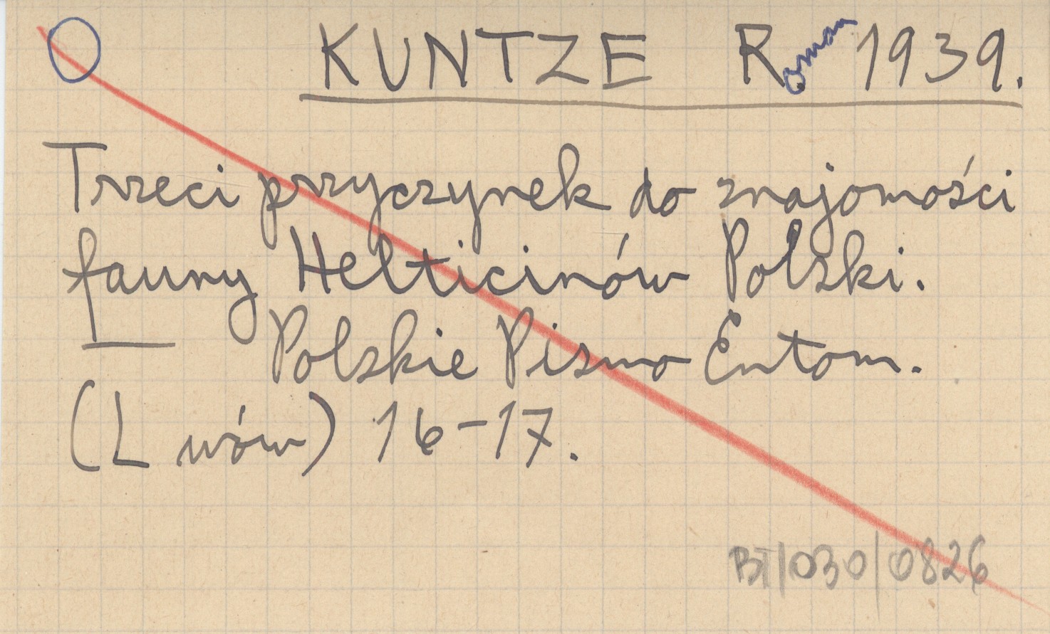 KUNTZE Roman 1939 Trzeci przyczynek do znajomości fauny Helticinów Polski.