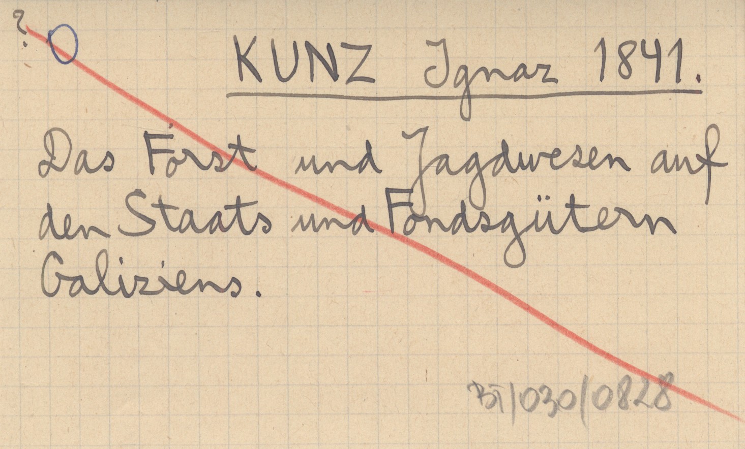KUNZ Ignaz 1841 Das Forst und Jagdwesen auf den Staats und Fondsgütern Galiziens.