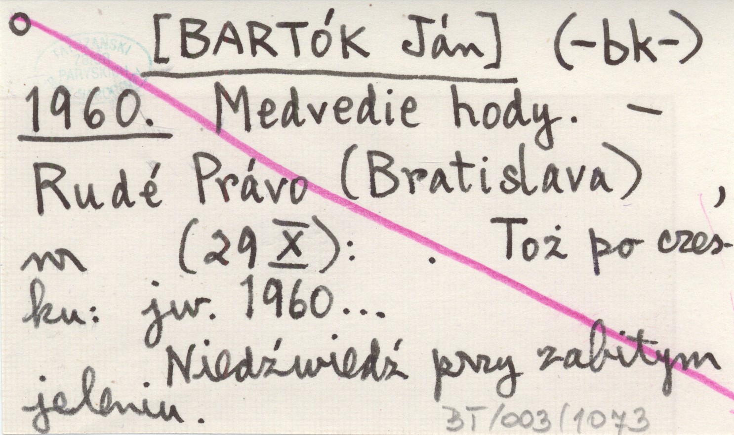 Rudé Právo (Bratislava) , 29 X. Niedźwiedź przy zabitym jeleniu. Toż po czesku: jw. 1960...