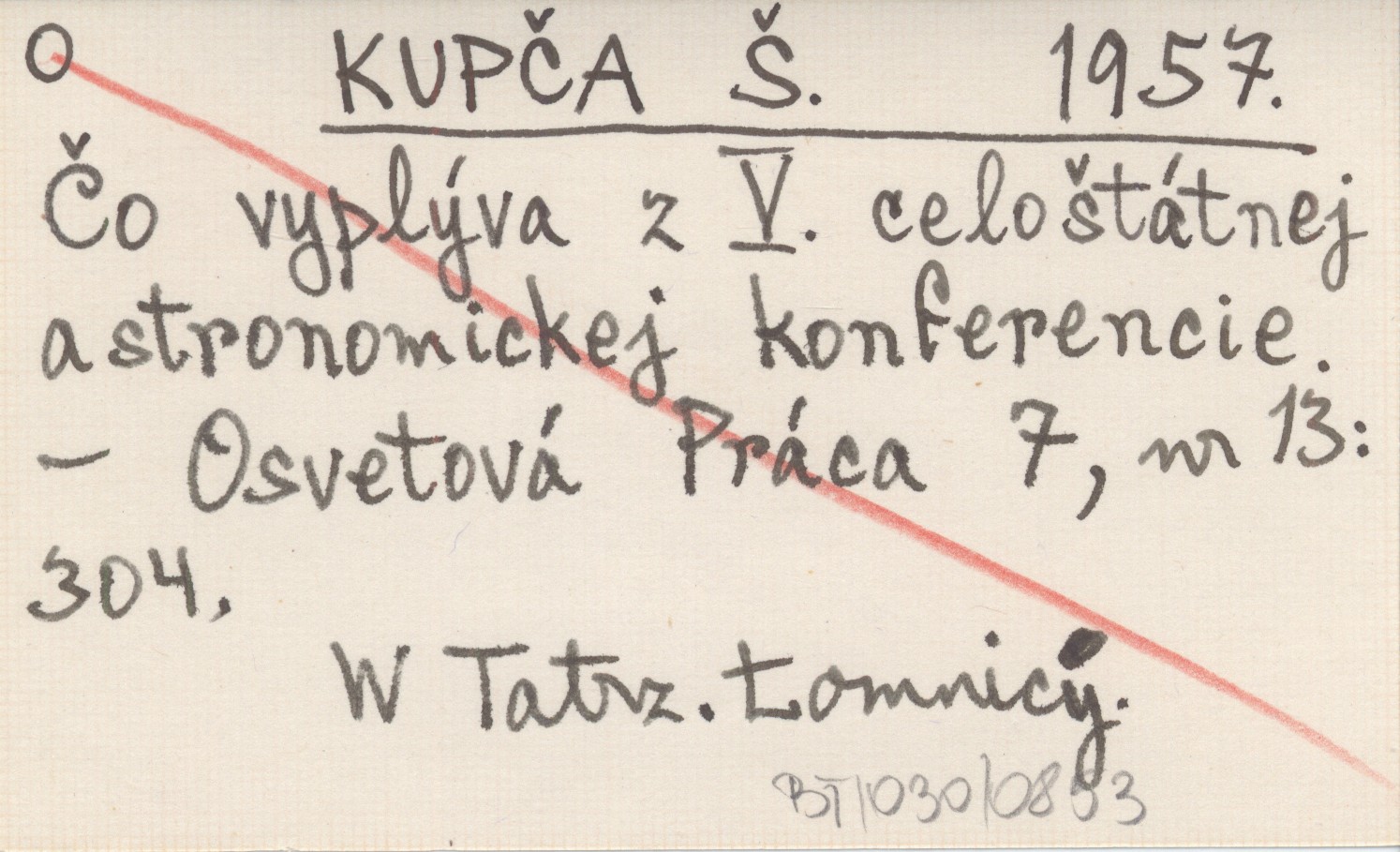 KUPČA Š. 1957 Čo vyplýva z V. celoštátnej astronomickej konferencie.