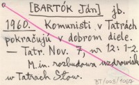 jb. [BARTÓK Ján] 1960 Komunisti v Tatrách pokračujú v dobrom diele.