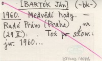 (-bj-) [BARTÓK Ján] 1960 Medvědí hody.