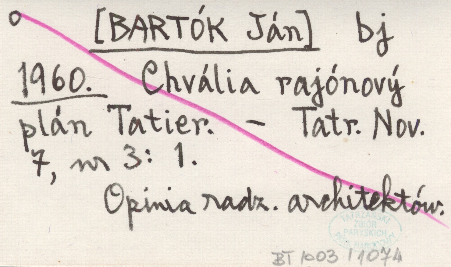 bj [BARTÓK Ján] 1960 Chvália rajónový plán Tatier.