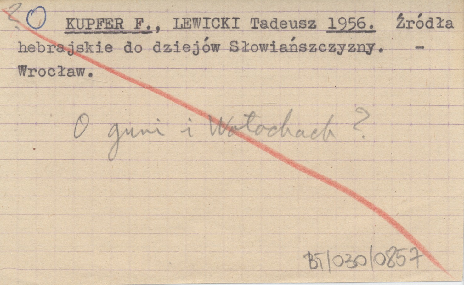 KUPFER F. LEWICKI, Tadeusz. ; 1956 Źródła hebrajskie do dziejów Słowiańszczyzny.