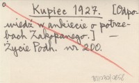 Kupiec 1927 [Odpowiedź w ankiecie o potrzebach Zakopanego.]