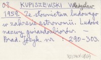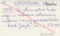 KUPISZEWSKI Władysław 1958 Ze słownictwa ludowego w zakresie astronomii. Ludowe nazwy gwiazdozbiorów.