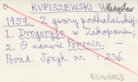 KUPISZEWSKI Władysław 1959 Z gwary podhalańskiej: 1. Drogoryjo w Zakopanem ; 2. O nazwie Poronin.