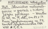 KUPISZEWSKI Władysław 1969 Słownictwo meteorologiczne w gwarach i historii języka polskiego.
