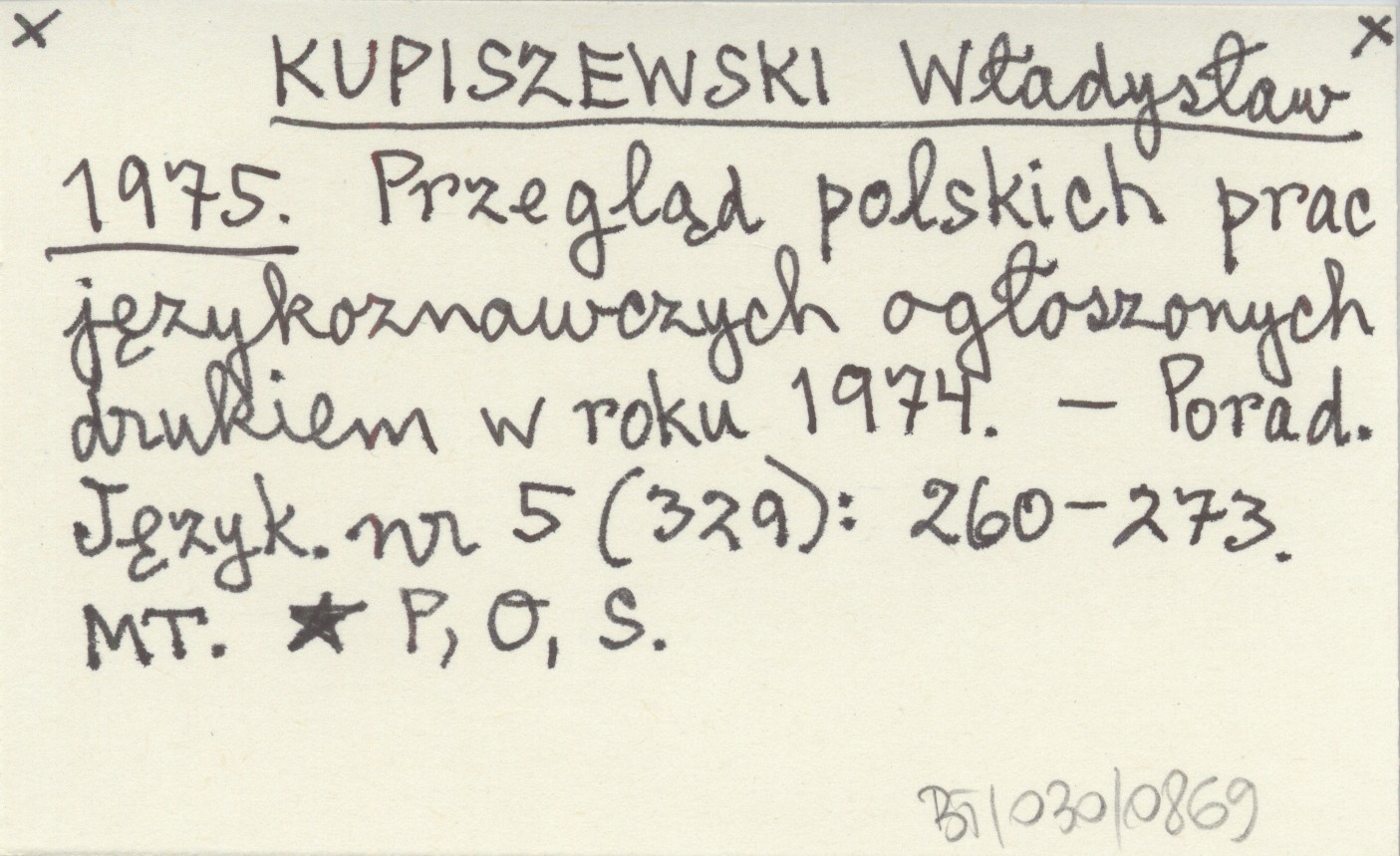 KUPISZEWSKI Władysław 1975 Przegląd polskich prac językoznawczych ogłoszonych drukiem w roku 1974.