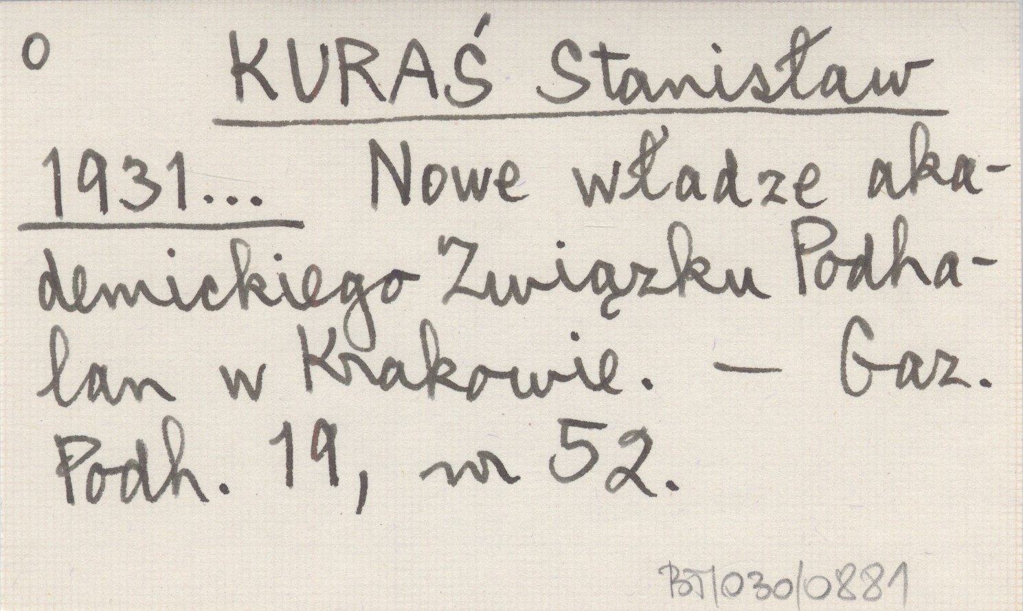 KURAŚ Stanisław 1931... Nowe władze akademickiego Związku Podhalan w Krakowie.