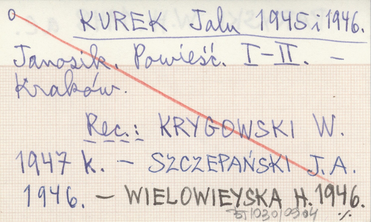 Kraków , REC: KRYGOWSKI W. 1947 k ; SZCZEPAŃSKI J. A. 1946 ; WIELOWIEYSKA H. 1946 ; PARYSKI W. H. 1948 ae ;