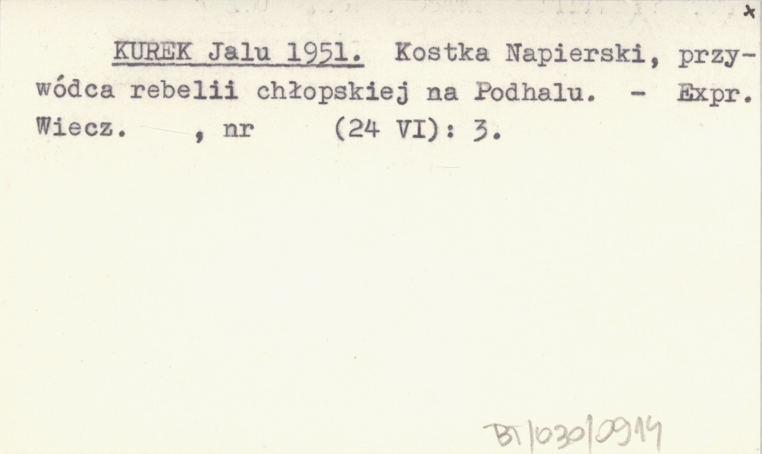 KUREK Jalu 1951 Kostka Napierski, przywódca rebelii chłopskiej na Podhalu.